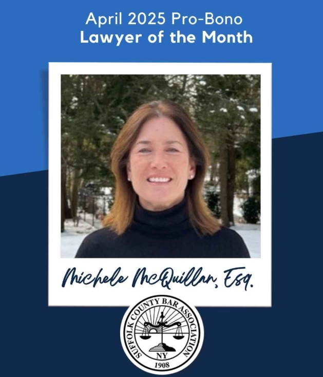 Congratulations to Michele McQuillan on being honored this month as the Pro Bono Lawyer of the month by the Suffolk County Bar Association!