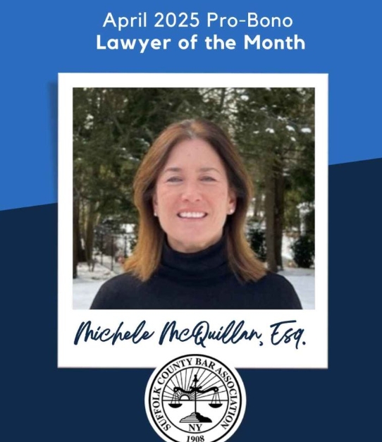 Congratulations to Michele McQuillan on being honored this month as the Pro Bon Lawyer of the month by the Suffolk County Bar Association.