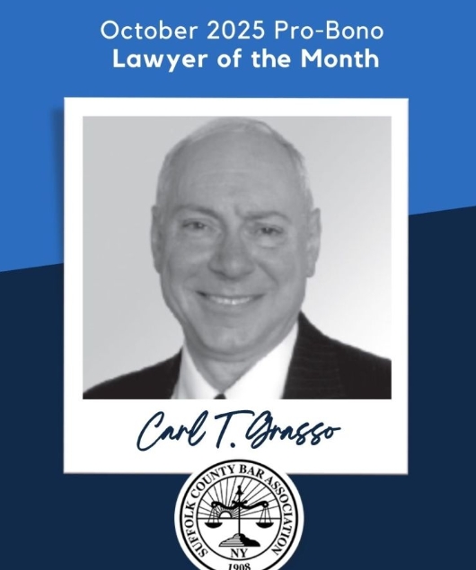 Congratulations to Carl Grasso on being honored this month as the Pro Bono Lawyer of the Month by the Suffolk County Bar Association.