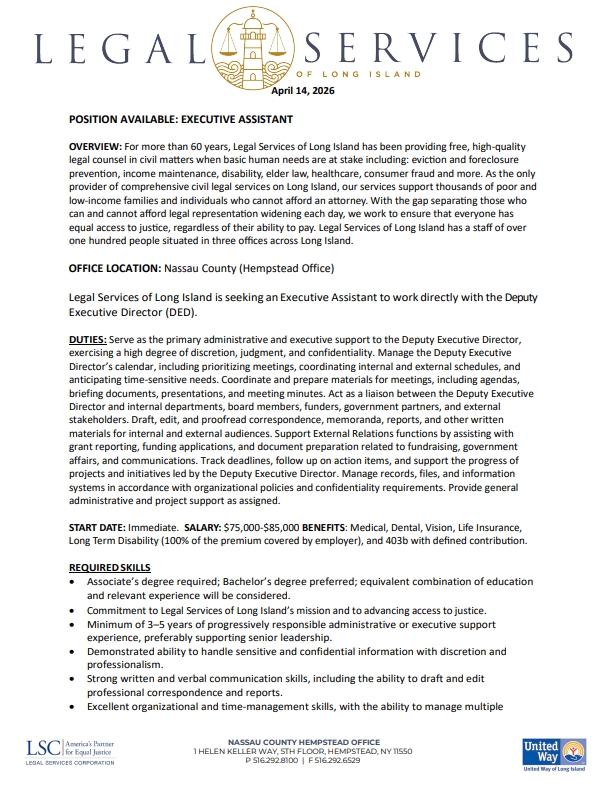 POSITION AVAILABLE: Paid Student Interns for Landlord Tenant CourtApril 10, 2026 Share Related postsPOSITION AVAILABLE: Paid Student Interns for Landlord Tenant CourtRead morePOSITION AVAILABLE: Staff Attorney- HIV Law ProjectRead morePOSITION AVAILABLE: Staff Attorney- Housing UnitRead more