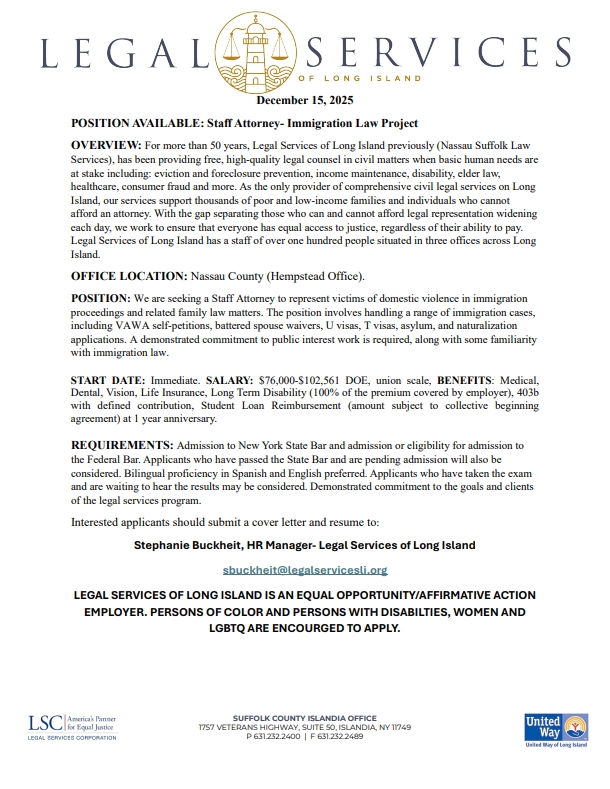 POSITION AVAILABLE: Staff Attorney EDCAP UnitNovember 25, 2025Students with Disabilities Can Attend NY Schools Until 22December 3, 2025 Share Related postsPOSITION AVAILABLE: Paralegal in the Pro Bono UnitRead morePOSITION AVAILABLE: Paralegal HIV Law ProjectRead morePOSITION AVAILABLE: Staff Attorney EDCAP UnitRead more