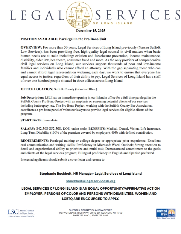 POSITION AVAILABLE: Paralegal HIV Law ProjectDecember 9, 2025 Share Related postsPOSITION AVAILABLE: Paralegal HIV Law ProjectRead morePOSITION AVAILABLE: Staff Attorney- Immigration Law ProjectRead morePOSITION AVAILABLE: Staff Attorney EDCAP UnitRead more