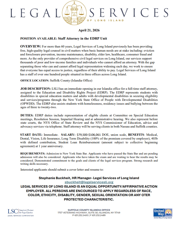 Save the Date: Cooling Assistance Opens April 25, 2026March 31, 2026POSITION AVAILABLE: EXECUTIVE ASSISTANTApril 14, 2026 Share Related postsPOSITION AVAILABLE: EXECUTIVE ASSISTANTRead morePOSITION AVAILABLE: Staff Attorney- Housing UnitRead morePOSITION AVAILABLE: Staff Attorney- Housing Unit Read more