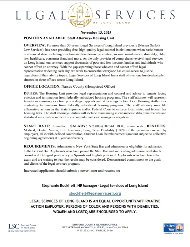 POSITION AVAILABLE: Paralegal- Community Legal Help ProjectNovember 13, 2025POSITION AVAILABLE: Staff Attorney- Domestic Violence UnitNovember 14, 2025 Share Related postsNovember 17, 2025POSITION AVAILABLE: Paralegal- ICAN UnitRead moreNovember 14, 2025POSITION AVAILABLE: Staff Attorney- Domestic Violence UnitRead moreNovember 13, 2025POSITION AVAILABLE: Paralegal- Community Legal Help ProjectRead more