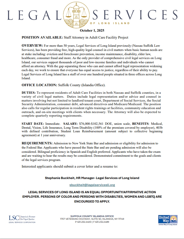 POSITION AVAILABLE: Paralegal- Domestic Violence UnitSeptember 26, 2025 Share Related postsSeptember 26, 2025POSITION AVAILABLE: Paralegal- Domestic Violence UnitRead moreSeptember 26, 2025POSITION AVAILABLE: Paralegal- Domestic Violence UnitRead moreSeptember 26, 2025POSITION AVAILABLE: Staff Attorney- Domestic Violence UnitRead more